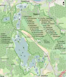 Cele 5 lacuri principale, datorită cărora regiunea a fost denumită, sunt: