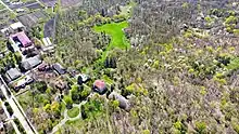 ![]() Vedere aeriană a localității și a Conacului A. I. Pommer. | |