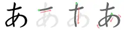| Fără semne diacritice: a (あ行 a-gyō) |