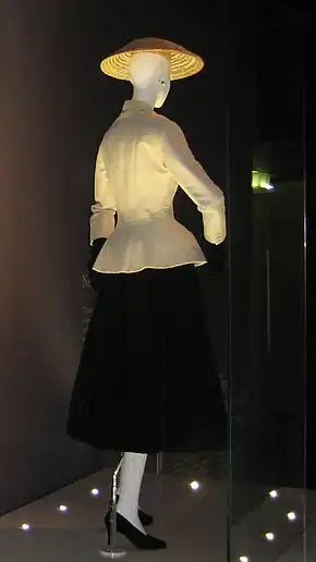 Unul din costumele seriei de toamnă 1947, a companiei Christian Dior, într-o expoziție a companiei la Moscova, în 2011.