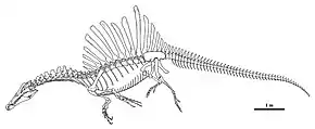 29 aprilie: un nou studiu despre Spinosaurus aegyptiacus susține că a găsit primele dovezi clare pentru o structură de propulsie acvatică la un dinozaur non-aviar.[107] Imaginea arată reconstrucția scheletului S. aegyptiacus în postura de înot înainte de descoperirea înotătoarei caudale.