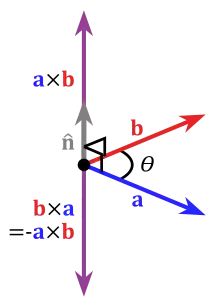 Produsul vectorial al doi vectori și este un vector în spațiul tridimensional. Operația este notată prin simbolul ×. Produsul este perpendicular pe ambii și , adică este normal pe planul care-i conține pe ambii. Are multe aplicații în matematică, fizică și inginerie.