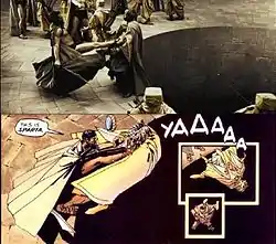 - François Peneaud and Joe Palmer. „Frank Miller and 300's Assault on the Gay Past”. AfterElton.com — Gay and Bisexual Men in Entertainment and the Media. Arhivat din originalul de la . Accesat în .