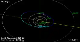 - Diagrama orbitei asteroidului 304 Olga (JPL)