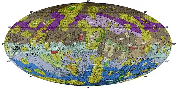 | 6–7 milioane de ani | Cristalizarea progresivă a unei mantale topite în convecție. Convecția sa oprit când aproximativ 80% din material a cristalizat |