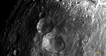 Movilă centrală umbrită de deal la polul sudic al Vestei (2 februarie 2015)