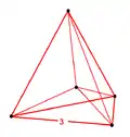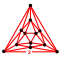 ![]() Proiecția unui 5-celule cu o celulă în față are o anvelopă tetraedrică. Cea mai apropiată celulă se proiectează pe întreaga anvelopă și în 4D ascunde celelalte 4 celule; prin urmare, nu sunt redate aici. |
