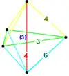 Alt set de coordonate centrate în origine în 4-spațiu poate fi văzut ca o hiperpiramidă cu o bază tetraedrică regulată în 3-spațiu, cu lungimea laturii 2√2 și raza √3,2: