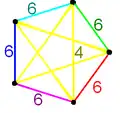 Un 5-celule se proiectează în planul Coxeter A4 ca un pentagon regulat și pentagramă.