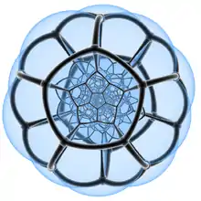 ![]() Proiecție stereografică tip cadru de sârmă (laturi proiectate pe o 3-sferă) |