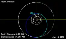 - Cea mai mică depărtare de Pământ a avut loc la 14 ianuarie 1988, la 0,9467 ua.