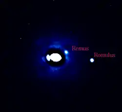 Romulus, primul satelit, a fost descoperit pe 18 februarie 2001, de la telescopul Keck II de Michael E. Brown și Jean-Luc Margot. Remus, al doilea satelit, a fost descoperit trei ani mai târziu, pe 9 august 2004, de Franck Marchis de la UC Berkeley și Pascal Descamps, Daniel Hestroffer și Jérôme Berthier de la Observatoire de Paris, Franța.