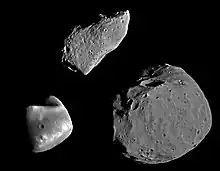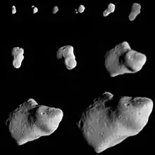 ![]() Imagine Galileo cu Gaspra; culorile sunt exagerate | |