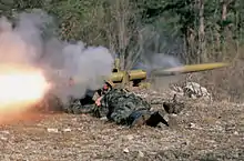 - 9M111 Fagot (cod NATO: AT-4 Spigot și AT-4A Spigot A) În dotare din anul 1970. Distantața maximă de tragere de 2000 metri, minim 70 de metri. Focosul poate perfora 400 mm de blindaj laminat sau 200 mm de blindaj înclinat la 60°.[7]