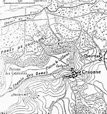 În timpul retragerii germane către Siegfriedstellung (Linia Hindenburg) în martie 1917, a avut loc o retragere modestă în apropiere de Soissons. Pe 17 martie, defensiva germană de la Crouy și Côte 132 s-a dovedit a fi inexistentă și pe măsură ce trupele franceze au pornit în urmărire, trupele germane au contra-atacat la Vregny și Margival, ceea ce a redus viteza urmăririi franceze a unui avans pas-cu-pas. Prin aprilie, înaintarea franceză progresase doar dincolo de Neuville-sur-Margival și Leuilly. Pe 1 aprilie, un atac francez de-a lungul liniei Ailette–Laon a atins limitele localităților Laffaux și Vauxaillon. Vauxeny și Vauxaillon au fost ocupate câteva zile mai târziu.[10]