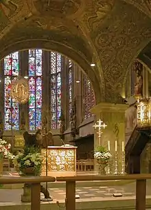 - Domul din Aachen, simbolul orașului, a fost clădit în anul 800 d.H. de către arhitectul Odo (Eudes) de Metz, pe locul capelei din timpul lui Carol cel Mare, la comanda împăratului. Are cupole de formă ortogonală. Conține tronul și osemintele împăratului Carol cel Mare. Aici în Dom au fost încoronați, între 936 și 1531, peste 30 de monarhi. Domul este o capodoperă a stilului gotic, loc de pelerinaj al credincioșilor din 1349 (pelerinaj care se repetă la fiecare 7 ani). Domul a fost înscris în anul 1978 pe lista patrimoniului cultural mondial UNESCO.