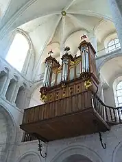 Corul bisericii abațiale, orga și vedere exterioară a bisericii abațiale, dinspre grădini