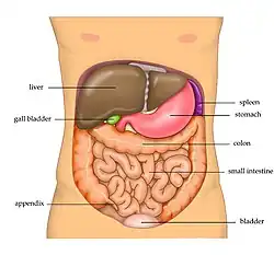 Abdomenul este partea corpului la om și la mamifere cuprinsă între pelvis și cutia toracică. Funcțional, în interiorul abdomenului se află cea mai mare parte a organelor ce se ocupă cu digestia și absorbția alimentelor. Sistemul digestiv este format din esofag, stomac, duoden, jejun, ileon, colon și rect. Alte organe vitale aflate în cavitatea abdominală sunt ficatul, rinichii, pancreasul și splina.