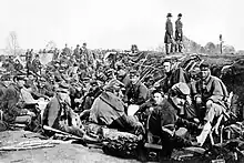 În ciuda sfaturilor președintelui, Burnside a lansat prematur o ofensivă de-a lungul râului Rappahannock(en)[traduceți] și a fost surprinzător învins de Lee la Fredericksburg în decembrie. Burnside nu a fost doar învins pe câmpul de luptă, el a fost învins și datorită indisciplinei și nemulțumirilor din rândul soldaților. Dezertările din 1863 erau de ordinul miilor și au crescut după Fredericksburg.[194] Lincoln l-a adus pe Joseph Hooker(en)[traduceți], în ciuda faptului că era slobod la gură cu părerile lui că ar trebui impusă o dictatură militară.[195]