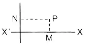 2. (Pentru un punct din plan, raportat la reperul format de axele concurente Ox și Oy). Prima coordonată carteziană a punctului respectiv, măsurată pe segmentul dus din punct, paralel cu axa Ox, până la axa Oy.