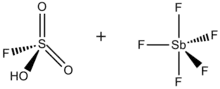Acidul magic (FSO3H·SbF5) este un superacid, fiind format dintr-un amestec echimolar 1:1 de acid fluorosulfonic (HSO3F) și pentrafluorură de stibiu (SbF5). Acest amestec a fost dezvoltat în anii 1960 de către George Olah de la Case Western Reserve University, și a fost utilizat pentru stabilizarea carbocationilor și a ionilor carboniu hipercoordinați în medii lichide. În mod similar cu ceilalți superacizi, acidul magic este utilizat pentru a cataliza hidrocarburi saturate și s-a demonstrat că are capacitatea de a protona baze foarte slabe, precum metanul, xenonul, halogenii și hidrogenul molecular.[1]