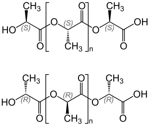 Acidul lactic este produs din amidonul din porumb sau trestia de zahăr prin fermentație. Acidul lactic nu poate fi polimerizat direct într-un produs util, pentru că fiecare reacție de polimerizare genereaza o moleculă de apă, care degradează lanțul polimerilor în formare în produși cu mase moleculare foarte mici.