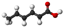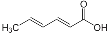 Acidul sorbic este un compus organic natural utilizat pe post de conservant.[4] Are formula chimică CH3(CH)4CO2H și este un solid incolor ce sublimează. A fost izolat pentru prima dată din fructele necoapte de Sorbus aucuparia (scoruș de munte). Sărurile sale se numesc sorbați.