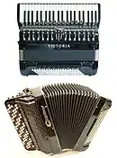 | Un acordeon-pian (sus) și un baian rusesec | ||