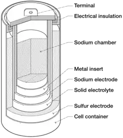 O reprezentare a interiorului unei baterii sodiu-sulf