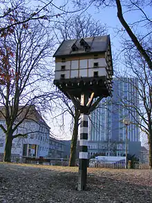 Porumbeii sunt ținuți în porumbare sau hulubării: cuiburi simple de scândură sau cotețe prinse de zidurile casei sub streașină, amenajate pentru una sau mai multe perechi de porumbei, cu compartimente separate pentru fiecare pereche și cu o ieșire. În țările mediteraneene, porumbarele –clădite în formă de turn, adăpostesc sute sau chiar mii de porumbei. În Franța și Italia, turnurile-porumbare sunt construite din cărămizi, iar în Egipt din nuiele și lut sau chiar chirpici.