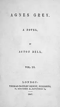 ![]() Paginǎ a primei ediții a cărții Agnes Grey, 1847 | |||||||