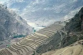 Agricultura incașă s-a dezvoltat odată cu expansiunea imperiului incaș. În regiunile joase ale imperiului se cultiva porumbul (numit sara în limba Quechua și maniocul, în timp ce în regiunile mai înalte și mai puțin fertile se plantau cartoful (papa sau patata), fasolea (terwi), ardeiul (regoto) și quinoa (o plantă specifică Anzilor, înrudită cu loboda și sfecla). În perioada de sfârșit a imperiului, culturile de plante au fost extinse și în zonele de mijloc și de coastă. Datorită introducerii unui sistem de terase irigate, unele plante au fost cultivate și în zonele aride. Lângă Cuzco există rămășițele unui gigantic rezervor de apă din care, pe timp de secetă, se irigau la mare distanță culturile agricole. Incașii au mărit suprafața agricolă prin construirea unor terase alpine. Prelucrarea în comun a pământului era prima obligație a fiecărui om de rând din imperiul incaș. Munca la câmp era supravegheată de un totricoc michoc[2], un descendent al incașilor care putea ordona și pedeapsa cu moartea pentru țăranii care nu-și respectau zilele prestabilite pentru lucru de domnitor.