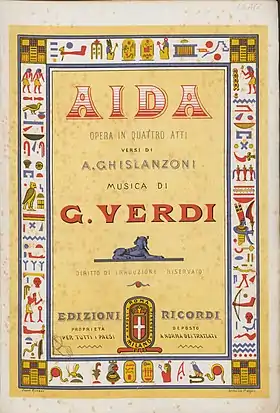 ![]() Coperta partiturii operei Aida (cca. 1872) | |