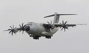 Airbus A400M este un avion cvadrimotor cu elice, cu misiunea de transportor militar și avion-cisternă, proiectat de Airbus Military care e prevăzut să înlocuiască avioane de transport învechite ale forțelor aeriene a mai multor țări, printre care C-160 Transall operate de Franța și Germania. Construirea primului prototip s-a început în 2007. Rollout-ul primului aparat a avut loc pe 26 iunie 2008 la Sevilla [2], unde avionul este asamblat din părți produse în diferite țări. Primul zbor a fost amânat de mai multe ori din cauza unor probleme tehnice a avut loc în toamna lui 2009.