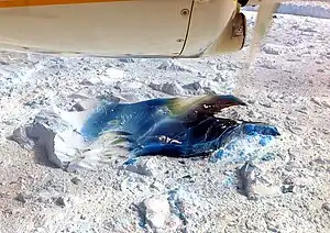 Un aisberg albastru este vizibil după ce gheața de deasupra apei se topește, provocând răsturnarea porțiunii netede de gheață de sub apă.[1][2] Gheața albastră se formează din comprimarea zăpezii pure, care apoi se dezvoltă în gheață glaciară.[3][4]