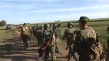 De la începutul lunii martie 2014, au avut loc demonstrații ale grupurilor pro-ruse și antiguvernamentale în regiunile Donetsk și Luhansk din Ucraina, denumite împreună "Donbass", în urmă revoluției ucrainene din 2014 și a mișcării Euromaidan. Aceste demonstrații, care au urmat anexarea Crimeea de către Federația Rusă, și care făceau parte dintr - un grup mai mare de concurente protestelor pro-rusești pe sudul și estul Ucrainei, a escaladat într - un conflict armat între forțele separatiste ale a Donetsk și Republica Populară Luhansk(respectiv, DPR și LPR) și guvernul ucrainean. Înainte de schimbarea conducerii de varf în august 2014, separatiștii au fost conduși în mare parte de cetățeni ruși. Se precizează că paramilitarii ruși reprezintă între 5 % și 20 % dintre combatanți.[59]