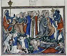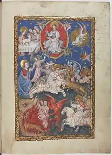 Manuscris medieval cu Abaddon comandand "lacustele" sa nimiceasca oamenii pacatosi