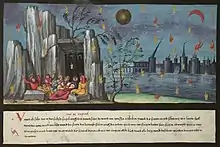 Imagine din manuscrisul german "Cartea Miracolelor" din Augsburg, secolul 16, infatisand capitolul 6 din Apocalipsa lui Ioan in care oamenii bogati se ascund in adaposturi subterane dupa "un cutremur mare"