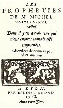 Nostradamus, un astrolog si medic francez din Franta secolului XVI, a scris o lucrare numita "Profetii", iar cei care ii interpreteaza catrenele sustin ca Nostradamus a prevestit incendiul Londrei din 1666, ascensiunea lui Napoleon si Hitler, izbucnirea celor doua razboaie mondiale si atentatele de la 11 septembrie, cat si izbucnirea celui de-al treilea razboi mondial si venirea Antichristului.