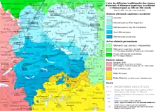 Regiunea alemanilor a fost întotdeauna neunitară și a cuprins un număr de diverse zone și teritorii reflectând originile sale mixte. În Evul Mediu timpuriu, teritoriul a fost împărțit și a aparținut de: