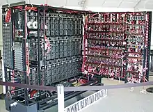 La câteva săptămâni după ce a ajuns la Bletchley Park,[62] Turing specificase deja o mașină electromecanică ce ar fi putut sparge codurile mașinii Enigma mai eficient ca bomba kryptologiczna(en)[traduceți] poloneză, de la care își trage numele. Cu o îmbunătățire sugerată de matematicianul Gordon Welchman(en)[traduceți], Bombe a devenit una dintre uneltele principale, și singura automată, de folosit pentru a ataca mesajele cifrate cu Enigma.