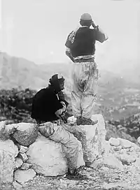 ![]() Albanezi (în față, cu fesuri qeleshe) la Cetinje, Principatul Muntenegru, 1906 | |||||||||||||