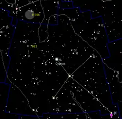 Poziţia stelei Albireo (colţul din dreapta jos)