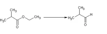 - catalizator Ni Raney, la o temperatură de circa 500C are loc formarea alcoolului corespunzător primar sau secundar (cazul cetonei):