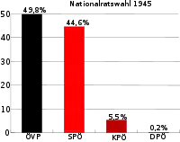 Alegerile pentru Consiliul Național Austriac din 1945 erau să "cadă", fiind primele alegeri după Al-ÎI-lea Război Mondial. Alegerile au avut loc conform Legii Austriece din 1929, cu toți cetățenii care aveau cel puțin 21 de ani, cu drept de vot, dar foștii Naziști nu aveau drept de vot ; surse oficiale vehiculau că numărul lor ar fi fost în jur de 200,000. Partidul Comunist Austriac nu a avut decât 4 mandate, lucru pentru care unii au dat vina pe zona Sovietică a Austriei stăpânită de Armata Roșie.