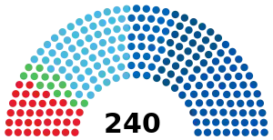 Cei 240 de membri ai Adunării Naționale sunt aleși prin reprezentare proporțională a listei închise din 31 de circumscripții cu mai mulți membri, cu dimensiuni cuprinse între 4 și 16 locuri. Pragul electoral este de 4%.[2]