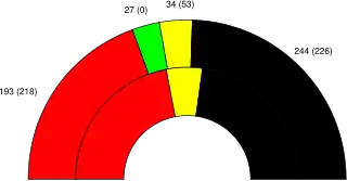 | Partid | Număr de voturi | Procentul de voturi / schimbare | Total locuri / schimbare | Procent locuri | |||
