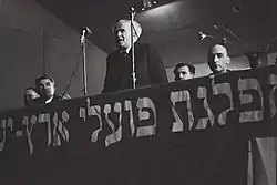 ² Ari Jabotinsky și Hillel Kook, ambii asociați ai Grupului Bergson în Statele Unite, s-au detașat de Partidul Herut; cu toate acestea ei nu au fost recunoscuți drept parte separată de către orator.