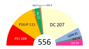 | Partidul Socialist al Unității Proletare (PSIUP) | 4.758.129 | 20,72 | 115 |