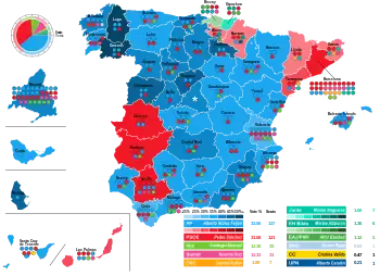 Pedro Sánchez | Social democrație | 28.00% | 120 | 92 | [38] [39] | ||